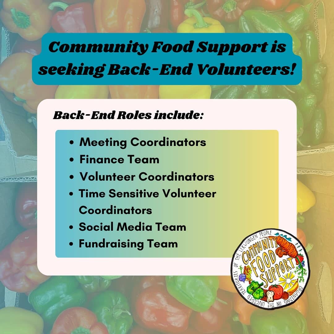FRIENDS & COMMUNITY! We are desperate need of more Back-End Volunteers to keep our program alive. We deliver 80+ food hampers weekly but much takes place behind the scenes to make that possible.