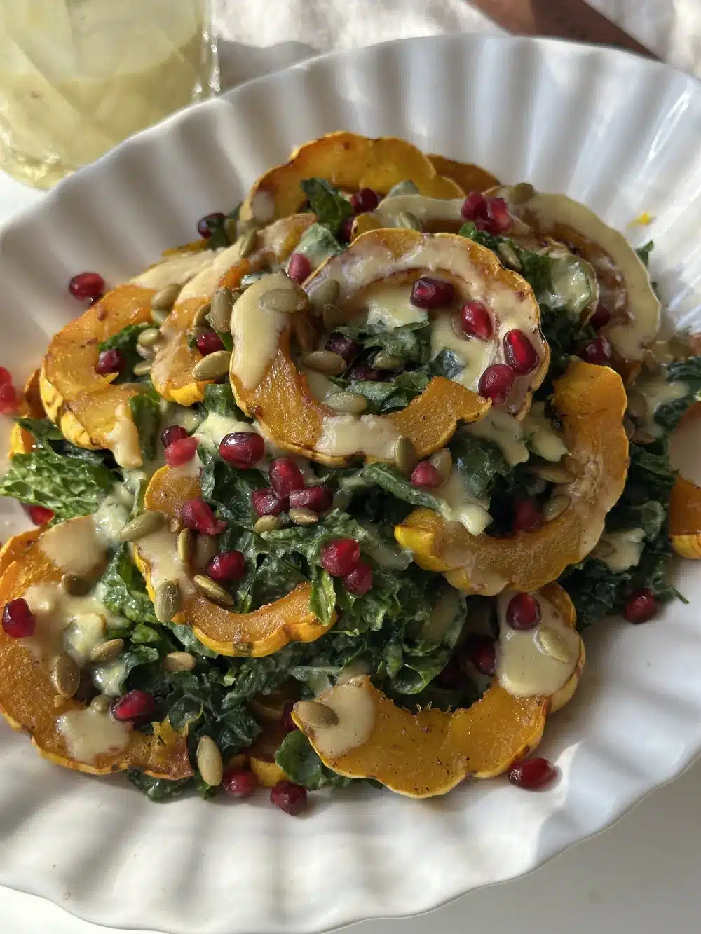 Still got Delicata squash in your larder, this Maple Delicata Kale Caesar salad is great way to use up not just your squash but your kale and other greens too. Find the recipe here.