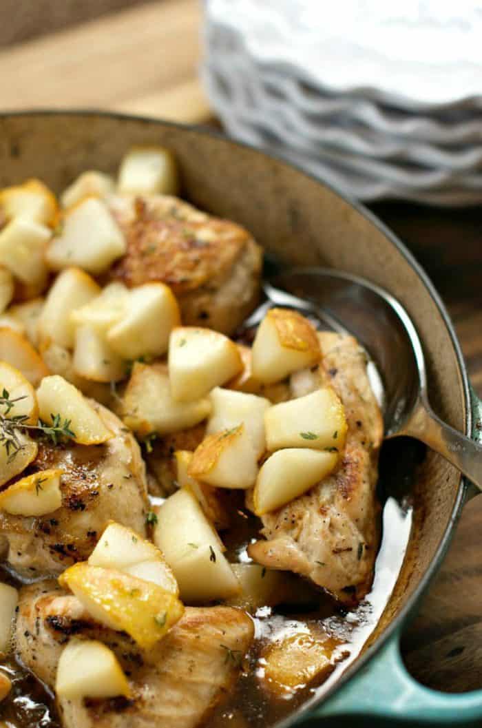 This one pot Roasted Chicken with Honey Bacon Pears is a great way to use up any soft pears in the back of your refrigerator drawer, saving them from getting wasted.