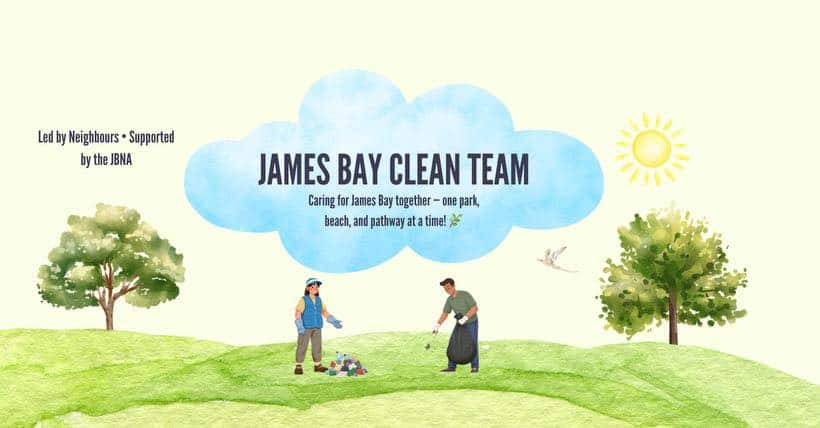 Hey neighbours! Want to help keep James Bay looking its best and have fun building community? Join the James Bay Clean Team! We’re just getting started and we’d love to hear your ideas and have you join the fun.