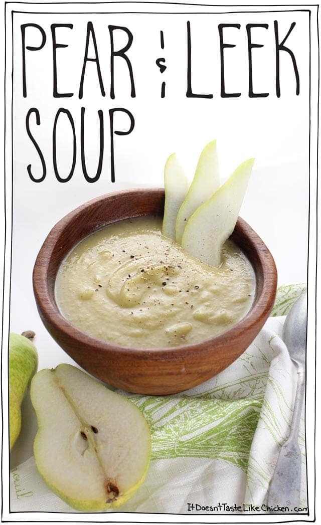 This pear & leek soup, shared by It Doesn’t Taste like Chicken, is perfect for using old pears and scraggly leeks. it’s creamy without the vegan and can be made for the vegans in your life or with but and chicken stock. Whatever suits.