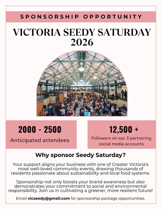 Who do you think would be a great fit to sponsor Victoria Seedy Saturday 2026? Have a favorite garden business or sustainability-minded local company? Tag them below and we’ll get in touch!