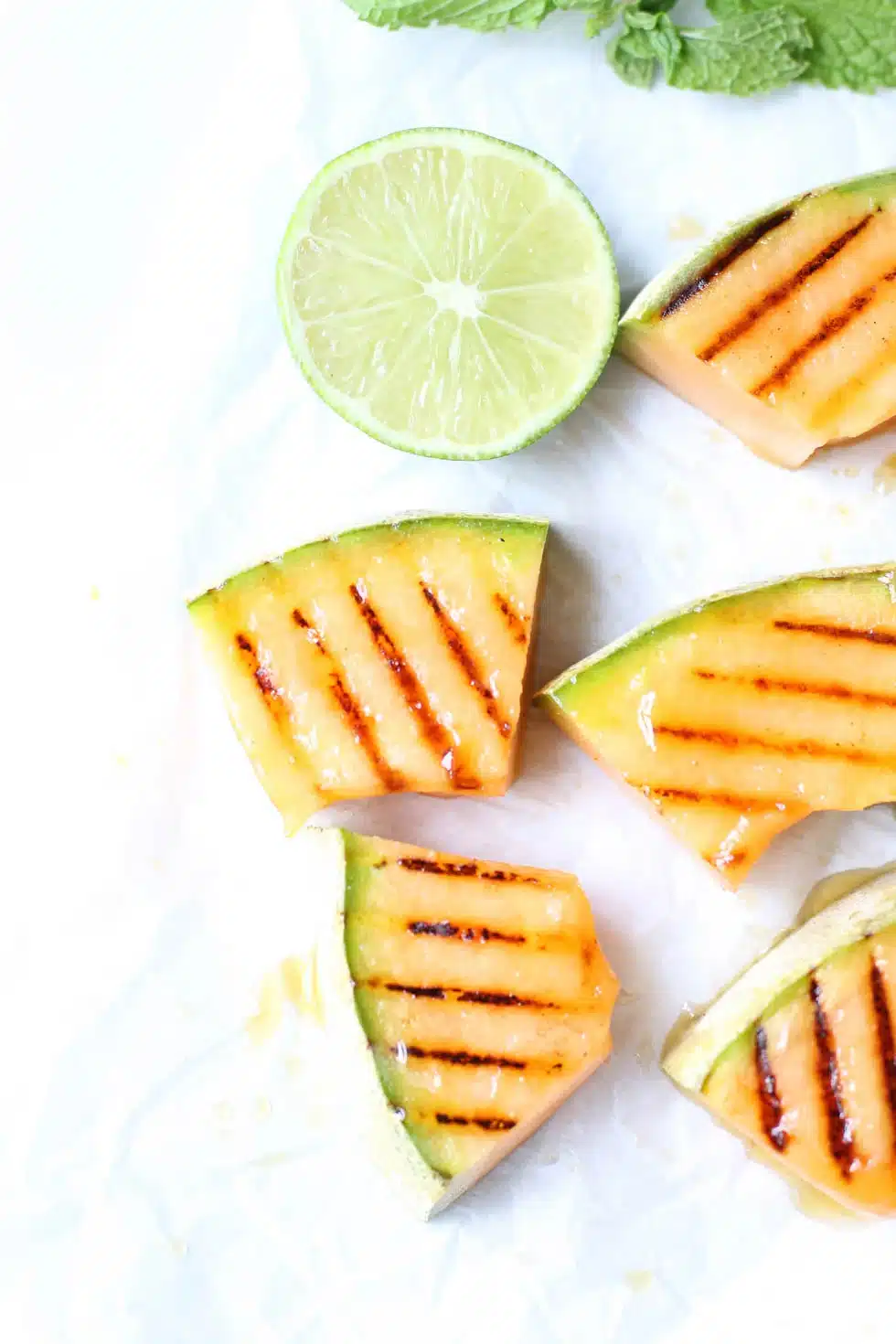 Honey Lime Grilled Cantaloupe is a quick way to add a little lightness to these dark, dreary days without the chill of our usual summer treats. The sweet and sour of this honey-lime pairing will give you a quick lift.