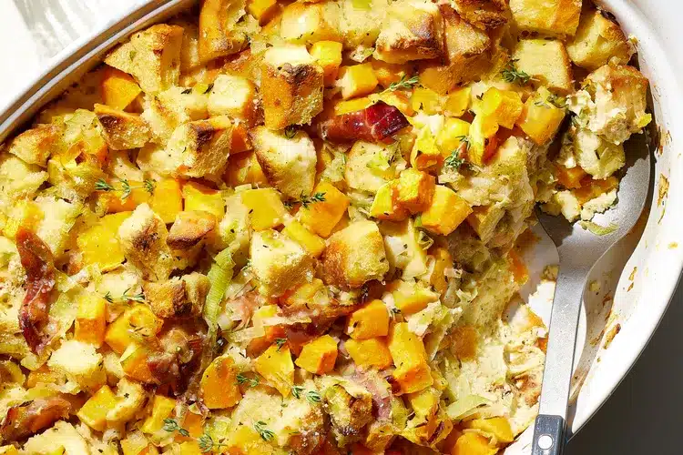 Butternut Squash Casserole with Leeks, Prosciutto, and Thyme is a little bit savory bread pudding and a little bit veggie gratin. Either way, it’s delicious comfort food.